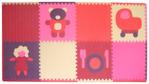 Veľká hracia plocha s okrajmi a motívom hračiek pre dievčatká. Penové puzzle v moderných farbách s rôznorodou povrchovou štruktúrou pre Vašich najmilších. Koberec sa skladá z ôsmich veľkých štvorcových dielov a dvanástich okrajových dielikov. Štyri diely majú vyberateľné časti a štyri diely sú bez vyberateľných obrázkov. Rozmer jedného dielika: 60 x 60 cm (merané bez okraja od zuba po výrez). Rozmer zloženého puzzle: cca 244 x 124 cm. Bezpečná a mäkká podložka je umývateľná, tlmí hluk a izoluje od chladu, je preto ideálna ako hrací koberec nielen do detských izieb. Rôzne farby, tvary dielikov a štruktúry povrchu stimulujú zmyslové vnímanie. Pri skladaní si s deťmi užijete nielen množstvo zábavy, ale zároveň podporíte rozvoj fantázie a motoriky. Odporúčané pre deti od 3 rokov. Neobsahuje ftaláty, kadmium, amoniak, ani formaldehyd. Poznámka: Farebné prevedenie je ilustratívne a môže sa líšiť.