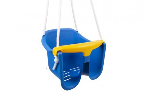 Hojdačka baby s bezpečnostnou zábranou je vzhľadom na svoju konštrukciu určená deťom od 12 mesiacov do 3 rokov. Jednoduchý systém zavesenia je behom chvíľky pripravený. Vyrobené v SR z kvalitného a nezávadného plastu. Odporúčanie: Hojdačku umiestnite tak, aby bol dodržaný bezpečný odstup od stien a iných predmetov. Podlahu voľte z materiálov tlmiacich náraz alebo trávnik. Na zavesenie použite háky zatočené o 540°, aby pri hojdaní nedošlo k vyháknutiu z hákov. Upozornenie: Pravidelne kontrolujte stav lán, uzlov a závesných krúžkov. Pri ich prípadnom porušení hrozí nebezpečenstvo prevrátenia alebo pádu. Poškodené diely pred ďalším použitím vymeňte. Maximálne zaťaženie je cca 25 kg. Priemer lana 10 mm, priemer oka na zavesenie 44 mm, priemer drôtu oka na zavesenie 5,5 mm. Dĺžka lana regulovateľná 100 - 170 cm. Varovanie: Určené iba na domáce použitie (v miestnosti alebo vonku). Obsahuje dlhé šnúry, hrozí nebezpečenstvo uškrtenia. Obal nie je hračka, odstráňte ho z dosahu dieťaťa. Výrobok zodpovedá požiadavkám harmonizovaných noriem EN 71-1 a 71-8, overené notifikovanou osobou č. 1023. Rozmery výrobku 33 x 24 x 28 cm.