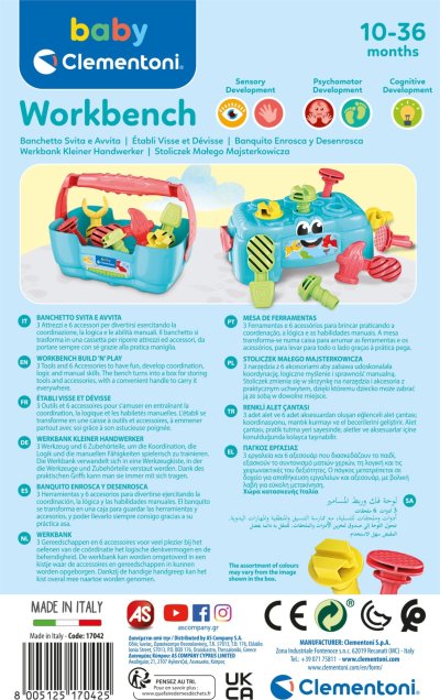 Výrobok patrí do ekologického programu CLEMENTONI Play for Future, ktorý bol vytvorený s cieľom oznámiť deťom dôležitosť udržateľnosti a ochrany životného prostredia. Rozmery dielne: 23 x 18 x 14 cm Dĺžka náradia: cca 10 cm