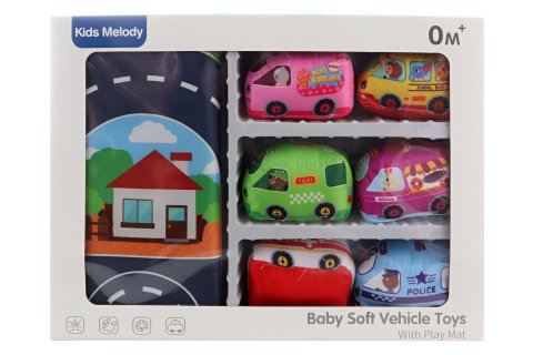 Baby dopravná sada obsahuje koberec a 6 dopravných prostriedkov. Koberec zároveň slúži ako taška na premiestnenie. Materiál polyester. Balené v krabici. Rozmery balenia 35,5x27x8,5 cm. Veľkosť dopravného prostriedku cca 9 cm. Vek 0+
