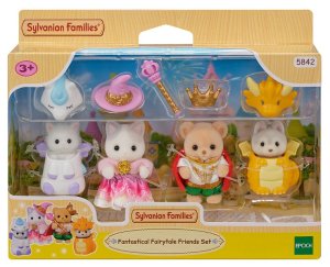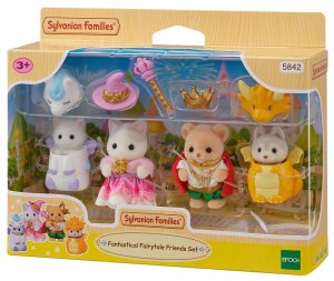 Zoznámte sa so štvoricou priateľov zo sveta Sylvanian Families, prezlečených do rozprávkových kostýmov. Krásne a jedinečné kostýmy boli navrhnuté na oslavu 40. výročia Sylvanian Families! Malá Blair z rodiny perzských mačiek sa prezliekla za bájneho Pegasa, Mabel z rodiny Latte mačiek má čarodejnícky kostým, Noah dievčatko z rodiny sušienkových medvedíkov, si obliekla šaty pre princa a Drake z rodiny husky sa hrdo predstavuje v dračom kostýme. Hračky Sylvanian Families rozvíjajú predstavivosť a povzbudzujú deti k hraniu rolí. Hra s figúrkami rozvíja kreativitu a učí emóciám vytváraním a rozprávaním príbehov založených na každodenných zážitkoch a pozorovaní sveta. Vyznačujú sa najvyššou kvalitou a výnimočným dôrazom na detaily. Figúrky Sylvanian Families sú pokryté mäkkým semišom, majú pohyblivé končatiny a hlavu. Oblečenie je možné z figúrok zložiť a vymeniť za iný outfit. Balené v krabičke. Rozmery balenia: 13 x 16,5 x 4,5 cm. Vek: 3+