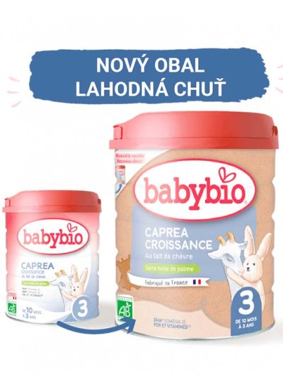 Babybio CAPREA 3 je pokračovacie dojčenské kozie BIO mlieko určené pre zvláštnu výživu dojčiat a malých detí od 10 mesiacov do 3 rokov. Dojčenské mlieka radu CAPREA sú vyrábané vo Francúzsku. Na výrobu je použité bio mlieko z holandských kozích ekochovov. Práve Holandsko má jednu z najdlhších tradícií v tejto oblasti. Pre kozie ekochovy tu platia prísnejšie nariadenia, než je tomu v ostatných krajinách EÚ. Zároveň tu panujú veľmi vhodné prírodné podmienky, a to vďaka prímorskej polohe a zloženiu pôdy, na ktorej sa nachádzajú voľné pasienky.