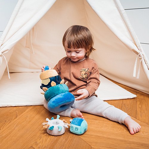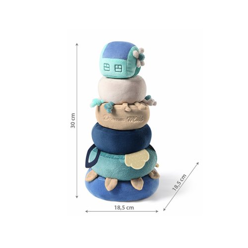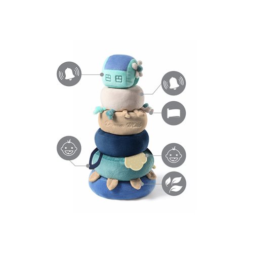 Vzdelávacia hračka Dream Mill zoznamuje bábätko s rozmanitým svetom farieb, zvukov a tvarov. Vďaka univerzálnym otvorom a možnosti usporiadania prvkov do tvaru veže je možné stimulovať jeho kreatívne myslenie.