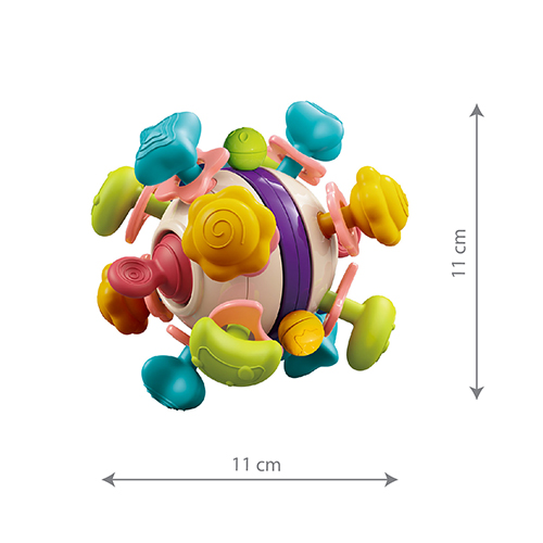 Hračka senzorická s hryzátkom Star ball je perfektnou hračkou pre vaše dieťatko. Celá je vyrobená z bezpečných materiálov a zároveň má premyslený design, ktorý podporuje detské senzorické a motorické schopnosti. Materiál príjemný na dotyk a bezpečný silikón jemne stimulujú detské ďasná čím pomáha pri období prerezávania zúbkov. Rotačný krúžok, ktorý je integrovaný do hračky, nielen priťahuje pozornosť, ale vydáva aj jemné zvuky, ktoré stimulujú sluch dieťaťa.
