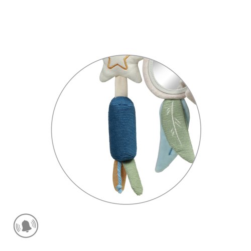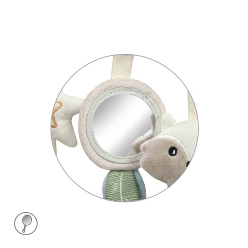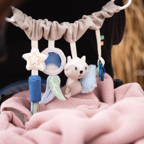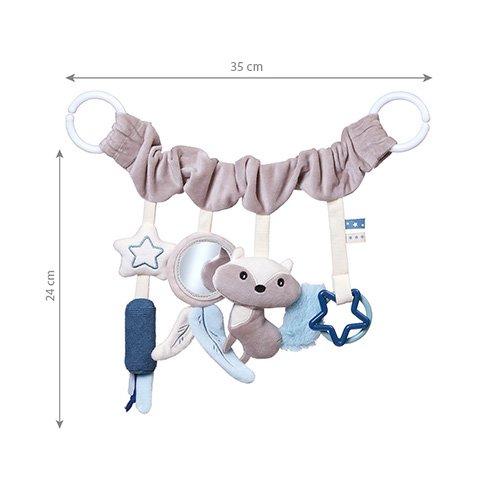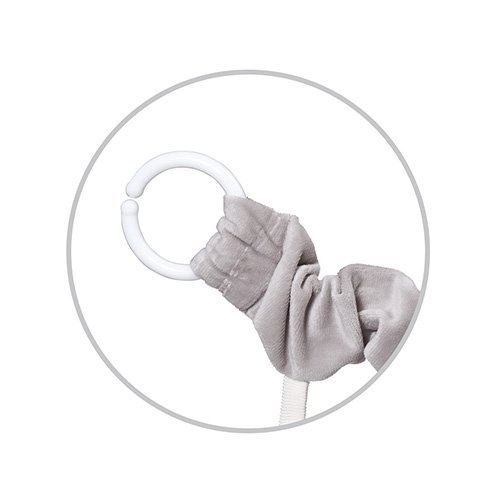 - Pomocou praktického a univerzálneho úchytu pripevníte hračku ku kočíku, autosedačke aj postieľke.