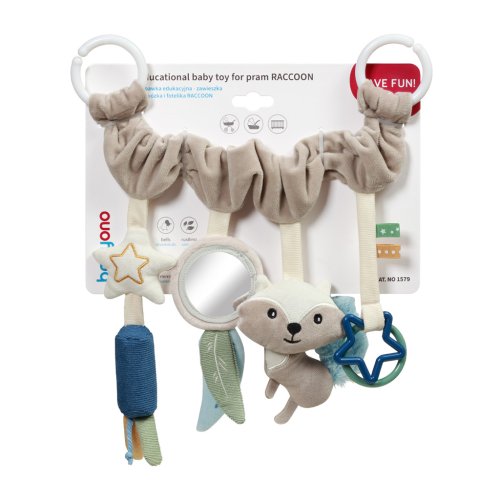 Závesná hrazdička Raccoon do kočíka a autosedačky je senzorický produkt, ktorý dokáže stimulovať hmat a zrak dieťaťa, ako aj zlepšiť jeho motorické schopnosti.