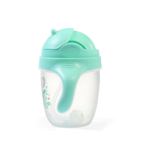 Vyvážené slamky Pohár je vhodný na učenie sa piť samostatne. Slamka sa pohybuje spolu s tekutinou vo vnútri fľaše, vďaka čomu môže vaše dieťa piť v akomkoľvek uhle, dokonca aj v poloľahu, alebo keď je pohár otočený dnom nahor.