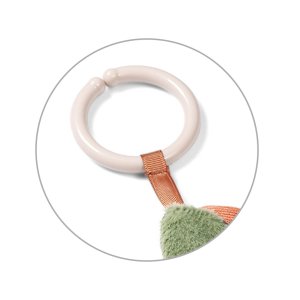 - Zrkadlo: Bezpečné zrkadlo obklopené farebnými stužkami ponúka príležitosť objaviť svoj vlastný odraz. Podnecuje zvedavosť vášho dieťaťa a stimuluje jeho zrak. Povzbudzuje ho k siahaniu a dotyku, čím rozvíja koordináciu oko-ruka.