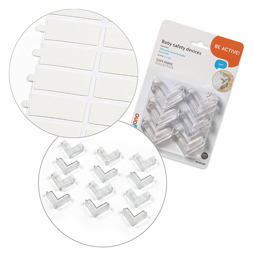 Ochrana rohov v tvare „L“ pomáha chrániť vaše dieťa pred bolestivými poraneniami spôsobenými ostrými hranami nábytku a iného vybavenia domácnosti. Umožňuje bezstarostné hranie a bezpečný priestor na rast. Ochranu rohov je možné pripevniť na akýkoľvek hladký a dôkladne očistený povrch – v závislosti na hrúbke aj na obe strany rohu. Silná obojstranná páska 3M umožňuje rýchlu a jednoduchú inštaláciu. Transparentný dizajn sa ľahko prispôsobí rôznym farbám a štýlom nábytku vo vašej domácnosti.