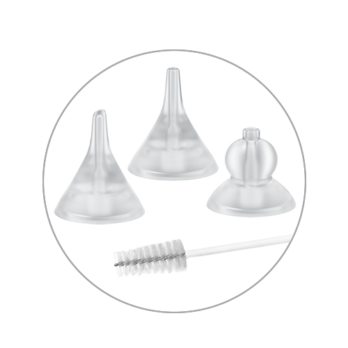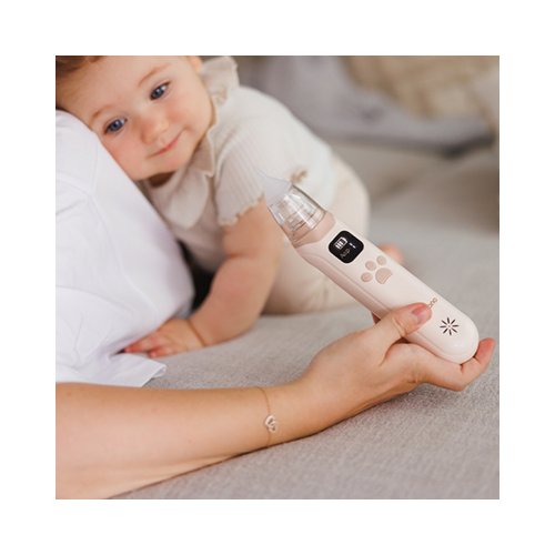Vlastnosti: Vysoký sací výkon Odsávačka poskytuje maximálny výkon 65 kPa s možnosťou výberu z 3 režimov. Zaručená rýchla a účinná úľava. Produkt je prispôsobený individuálnym potrebám dieťaťa. Tichá prevádzka Funguje pri nízkej hladine hluku. S hlučnosťou iba 50 dB, čo zodpovedá zvuku slabého dažďa ju možno použiť aj keď dieťatko spí. Rozhodnite sa pre ničím nerušený komfort a pokoj. LCD Displej Ľahko čitateľná obrazovka zobrazuje úroveň batérie a aktívny režim. Takže viete, kedy je potrebné zariadenie nabíjať, a ktoré nastavenia sú aktívne. Nabíjanie USB-C Vstavaná batéria s nabíjaním cez moderný USB-C konektor, káblik je súčasťou balenia. Dlhá doba prevádzky znamená, že odsávačka je pripravená vždy, keď ju potrebujete. Farebné podsvietenie a melódie Vstavané upokojujúce zvuky a farebné svetlo, ktoré mení farbu. Melódie upokojujú napätie a jemné svetlo vytvára pokojnú atmosféru. 3 Mäkké silikónové nástavce Ultra mäkké 3 silikónové nástavce, ktoré je možné prispôsobiť typu sekrétov a veku dieťatka. Obsahuje tiež prídavnú čistiacu kefku. Zaručene hygienické a prispôsobené potrebám tých najmenších.