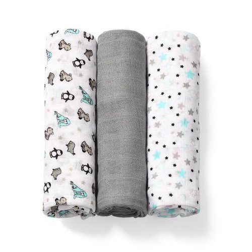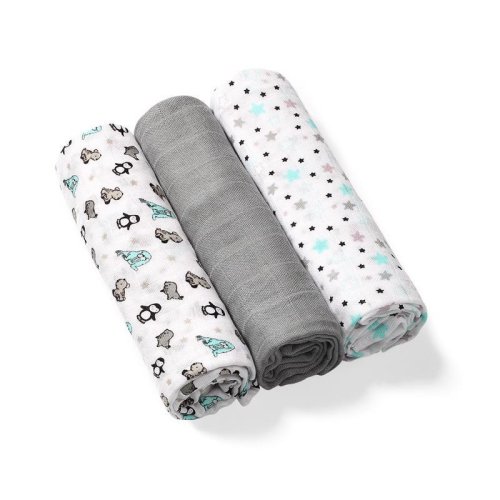 Sada obsahuje 3 plienky: 2 z nich sú ozdobené farebnými potlačami a jedna je jednofarebná.