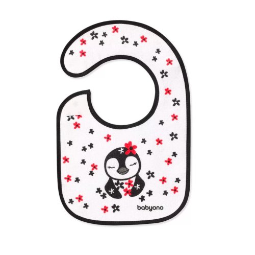 Podbradník s krásnym motívom je vyrobený z vysoko kvalitnej froté bavlny. Vnútorná vrstva je z nepremokavého materiálu, ktorý dodatočne chráni oblečenie dieťatka pred znečistením. Pohodlné a praktické zapínanie na suchý zips zvyšuje pocit pohodlia pre dieťatko.