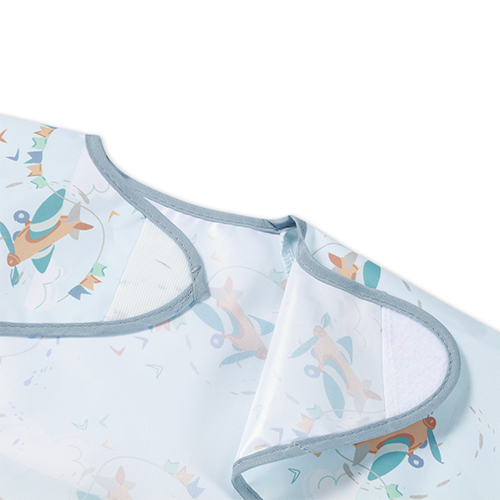 Podbradník s dlhým rukávom je šikovný pomocník, ktorý ochráni oblečenie Vášho bábätka. Počas jedla zaisťuje prednú časť oblečenia aj rukávy, ktoré sa obvykle zašpinia. Vďaka pružným gumičkám dobre priľne k malým ručičkám bábätka. Podbradník s rukávmi má tiež praktické vrecko na omrvinky, ktoré zachytáva zvyšky jedla. Zástera s rukávmi je vodeodolná a ľahko sa čistí, takže sa osvedčí, keď sa dieťatko učí jesť samo. Zapínanie podbradníka môžete ľubovoľne prispôsobiť veľkosti krku bábätka.