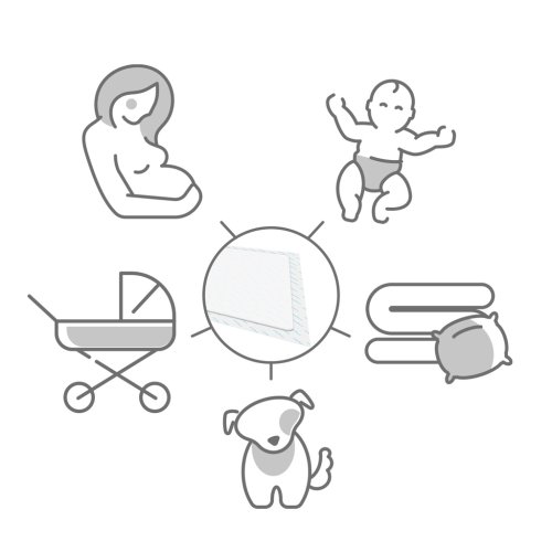 Jednorazové prebaľovacie podložky sú veľkou pomocou pri prebaľovaní dieťaťa, môžu byť tiež používané ženami v popôrodnom období. Mimoriadne absorpčné vložky zaisťujú komfort a hygienu. Vonkajšie plastové obloženie chráni pred znečistením, zatiaľ čo samolepiace pásky udržujú vankúšiky na svojom mieste. Superabsorpčný materiál vo vnútri podložky viaže vlhkosť rýchlo, neutralizuje akékoľvek nepríjemné pachy.
