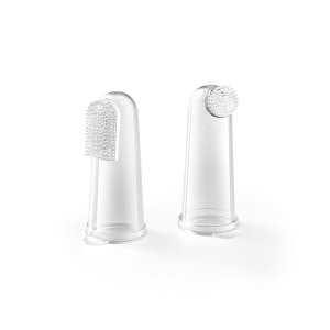 Silikónové detské zubné kefky Vám pomôžu udržať čistotu ústnej dutiny u detí od prvých mesiacov života. Súprava obsahuje dve rôzne prstové zubné kefky, ktoré sú vyrobené z mäkkého silikónu. Jedna z nich zaisťuje jemné čistenie zubov a druhá masáž ďasien. Obaja majú jemné výstupky a mäkkú kefku. Navyše môžete použiť praktické hygienické puzdro.
