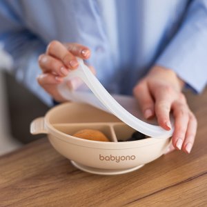 Silikónový tanier s prísavkou a viečkom – bezpečné a zábavné jedlo bez neporiadku. Zavádzate do jedálnička svojho bábätka tuhé jedlo alebo skúšate metódu BLW? Tento silikónový tanierik s tromi priehradkami vám to výrazne uľahčí. Umožní dieťaťu ochutnávať nové chute, podporuje samostatné kŕmenie a vďaka prísavke udrží tanier pevne na mieste – bez rizika prevrátenia. Viečko udrží jedlo teplé a čerstvé, takže môžete pripraviť jedlo vopred alebo uschovať zvyšky neskôr. Tri samostatné priehradky umožňujú servírovať rôzne druhy jedál bez miešania chutí. Zaoblené okraje a vyššie steny uľahčujú naberanie jedla, či už rukou alebo príborom. Tanier aj viečko sú vyrobené z odolného, netoxického silikónu bez BPA, ktorý môžete používať v mikrovlnnej rúre aj umývačke riadu.