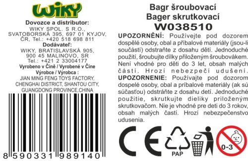 Bager skrutkovací. Veľkosť 23x11x13.5cm. Obsahuje bager a skrutkovač.