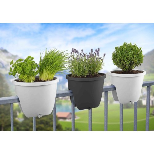 Balconia OVI je perfektný kvetináč na váš balkón, pretože je špeciálne tvarovaný na uchytenie na jeho zábradlí. Kvetináč má špeciálne poistky proti preklopeniu a zničeniu vašej kvety alebo rastliny. Kvetník má okrúhly tvar s možnosťou navŕtania otvorov na odvod vody. Vhodné pre okrúhle aj ploché zábradlia a ploty, ktoré musia mať šírku maximálne 6 cm kvôli možnosti prichytenia. Kvetináč Balconia ponúkame vo viacerých farbách a veľkostiach.