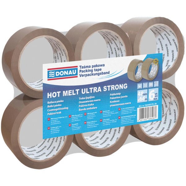 Baliaca páska z polypropylénu s lepivou vrstvou syntetického kaučuku (hot-melt) Veľmi odolná Pre širokú škálu aplikácií v mnohých priemyselných odvetviach Jednoduché odvíjanie Odolná voči vlhkosti 6 ks v balení