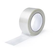 Lepiaca páska priečne vystužená sklenými vláknami, ktoré zvyšujú odolnosť pásky proti roztrhnutiu v priečnom smere