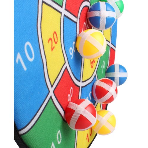 Jednoduchá, avšak veľmi hravá detská hra Ball Target zabaví rýchlo celú rodinu. Spočíva v jednoduchom triafaní terča pomocou pridaných loptičiek. Cieľom hry je samozrejme nahádzať čo najviac bodov. Na terči s priemerom 36 cm nájdete polia s hodnotami od 10 do maximálnych 100 bodov. Celkom 8 loptičiek je rozdelených do 4 farieb a to - modrej, zelenej, žltej a červenej. Povrch loptičiek je upravený špeciálnou páskou, ktorá udrží loptičku na terči. Môžete tak terč zavesiť na stenu a plynulo hrať formou šípok. Zároveň táto vlastnosť plní aj praktickú funkciu. Nemusíte sa báť, že by sa vám jednotlivé loptičky postrácali. Táto hračka sa perfektne hodí do detských izbičiek, škôlok alebo športových klubov. Upozornenie: Produkt nie je vhodný pre deti mladšie ako 3 roky.