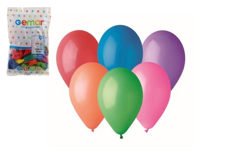 Okrúhle nafukovacie balóniky G120 33cm / 13" Doba vznášania - 24-30 hodín Balóniky sú vhodné pre dekorácie. Vrecko po 50 ks Balóny Gemar sú vyrábané výhradne v Taliansku v súlade s národnými a európskymi predpismi. Rozmery balenia 22 x 33 x 4 cm.
