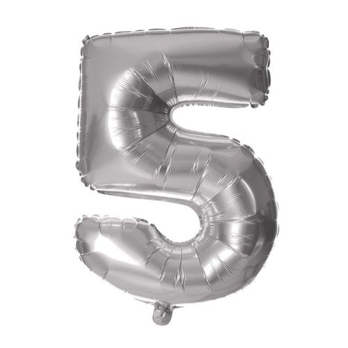 BALÓNIK ČÍSLICE 5, 30CM, MATNE STRIEBORNÁ