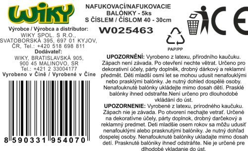 Balónik nafukovací 30 cm - sada 5ks, s číslom 40