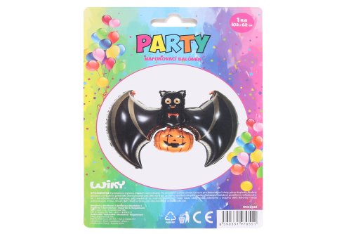 Balónik nafukovací v tvare netopiera + tekvica. Veľkosť vo vyfúknutom stave: 103x62 cm. Veľkosť v nafúknutom stave: 80x58 cm.