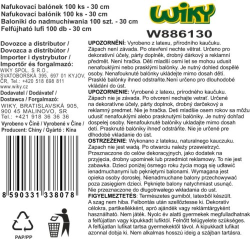 Balenie 100 ks Nafukovací balónik - biely s Wiky potlačou 30 cm