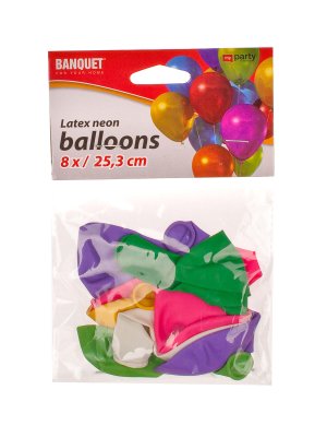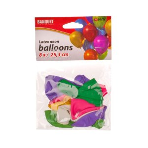 Súprava latexových balónikov pre Vaše oslavy a párty. Súprava obsahuje 8 ks kvalitných a zdravotne nezávadných balónikov pestrých neónových farieb. Na nafukovanie je možné používať pumpičku, ktorá je súčasťou sortimentu.