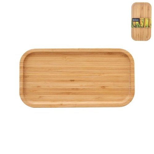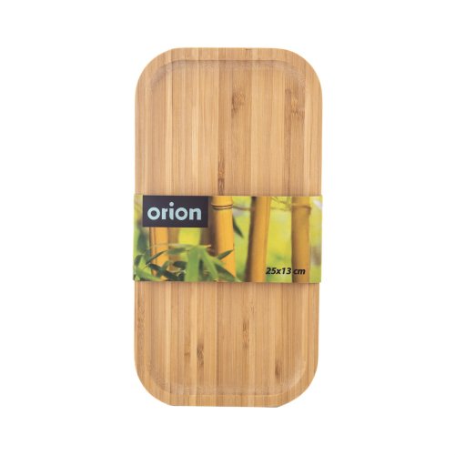 Bambusový podnos Orion - 25x 13 cm Servírovacia tácka sa hodí na podávanie jednohubiek, chlebíčkov, ale aj koláčikov alebo dezertov Materiál: bambusové drevo Rozmery: 25x 13x 1,5 cm