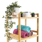 Bambusový regál s tromi policami dodáva interiéru príjemný prírodný dojem, pocit ľahkosti a prirodzenosti , zatiaľ čo jeho pevnosť a dlhá životnosť zaisťujú stabilitu a trvanlivosť .