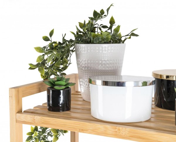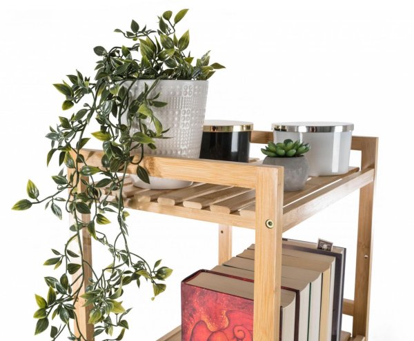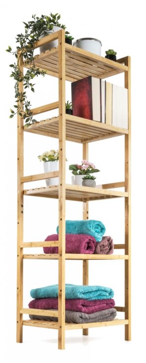 Bambus je prekvapivo ľahký, takže s celým stojanom s policami môžete ľahko manipulovať. Zároveň je ale dostatočne pevný, takže unesie aj väčšiu záťaž . Jednou z výborných vlastností bambusového dreva je navyše jeho veľká odolnosť voči vlhkosti a prirodzená odolnosť voči baktériám a plesniam , takže sa nemusíte obávať jeho umiestnenia v kúpeľni alebo práčovni.