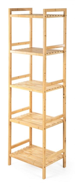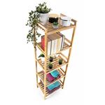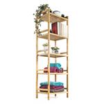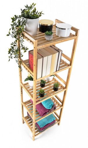 Bambusový regál s piatimi policami dodáva interiéru príjemný prírodný dojem, pocit ľahkosti a prirodzenosti , zatiaľ čo jeho pevnosť a dlhá životnosť zaisťujú stabilitu a trvanlivosť .