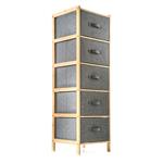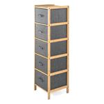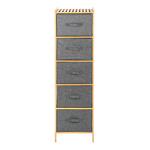 Praktický stojan s 5 výsuvnými textilnými košíkmi ušetrí veľa miesta a uložíte doň všetko, čo potrebujete. Potreby na pranie alebo kozmetiku, oblečenie aj detské hračky. Každý košík má objem 21 litrov, šírka je 33 cm, výška 19 cm a hĺbka 35 cm. Celý stojan má výšku 1,20 m.