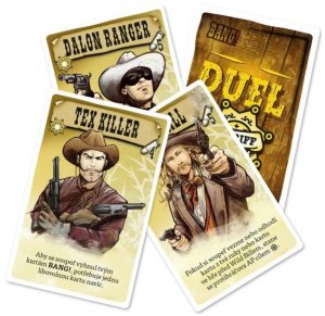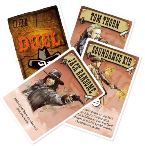 Bang Duel je samostatná hra pre dvoch hráčov, ku ktorej nepotrebujete základnú hru Bang! . Hráči si rozdelia strany, za ktoré budú hrať - muži zákona proti banditom. Zvíťazia ostrieľaní strážcovia zákona alebo sa ako poslední budú smiať neľútostní banditi?