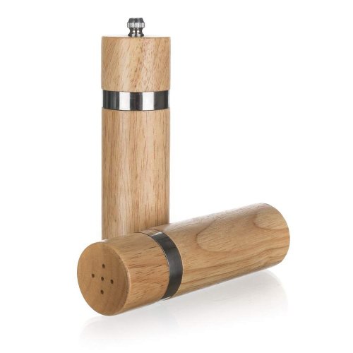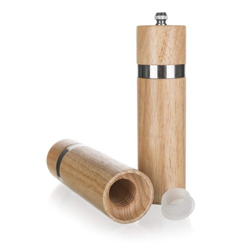 2dielna sada mlynček na korenie mechanický a soľnička z gumovníkového dreva, kvalitný keramický mlecí mechanizmus, moderný valcovitý tvar, otáčaním ľahko namelete korenie. Rozmer: výška 15,2 cm, priemer 4 cm.