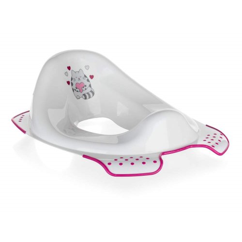 WC sedátko CAT je špeciálna doštička pre deti, ktoré začínajú chodiť samy na toaletu. Redukcia na WC s protišmykovou úpravou je zmenšenou kópiou bežnej dosky, bráni prekĺznutiu dieťaťa do misy . Sedátko je vyrobené z jemného plastu, praktické na čistenie, veľmi stabilné a hodí sa na väčšinu WC. Nosnosť 25 kg. Rozmery: cca 30 x 40 x 15 cm. Bez BPA.