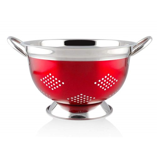Cedník nerezový AVANZA 23,5 cm, červený, hrúbka steny 0,35 mm, výška 13,5 cm. Cedník využijete pri oplachovaní zeleniny, cedení cestovín i mnohých ďalších jedál. Cedník je opatrený praktickým stojanom a uchami pre ľahkú manipuláciu.