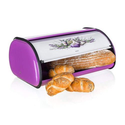 Chlebník LAVENDER 43,5 cm je určený na uchovávanie všetkých druhov pečiva. Materiál: oceľ, povrchová úprava dekor, fialová farba, hrúbka plechu 0,30 mm, rozmery: 43,5 x 27,5 x 18,5 cm.