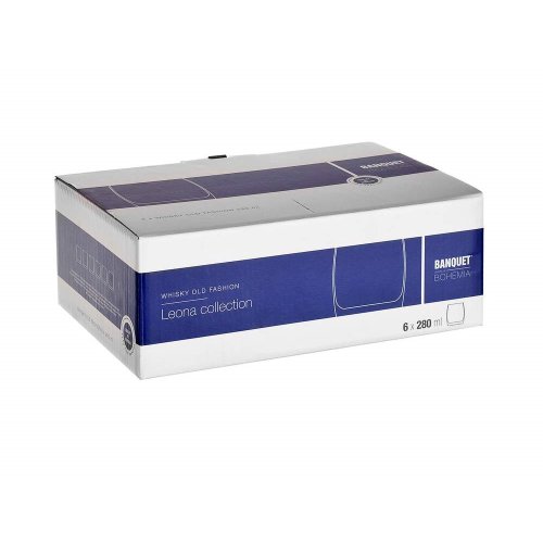 6dielna sada pohárov na whisky LEONA 280 ml značky BANQUET CRYSTAL v ozdobnom obale. Veľmi kvalitné sklo českej výroby.