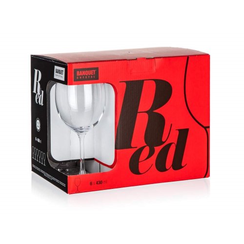 6dielna sada pohárov značky BANQUET CRYSTAL na červené víno, objem 430 ml v ozdobnom obale. Poháre sú vyrobené z veľmi kvalitného skla českej výroby.