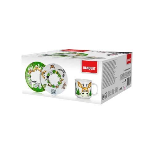 Detská 3dielna sada KAMARÁDI Z DŽUNGLE obsahuje: plytký tanier 20 cm, hlboký tanier 20 cm, šálka 210 ml, materiál - keramika.