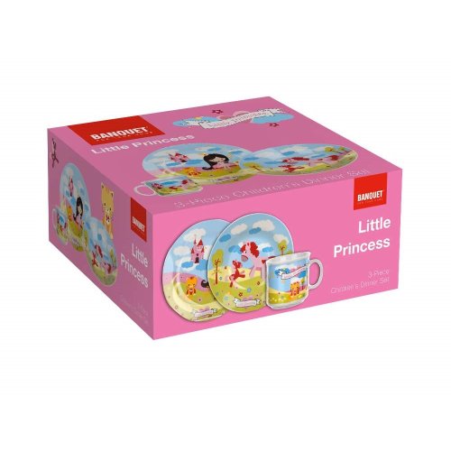 Detská 3dielna súprava LITTLE PRINCESS je zložená z hlbokého a plytkého taniera s priemerom 20 cm, hrnčeka s objemom 210 ml. Sada je vyrobená z keramiky s dekorom princeznej.