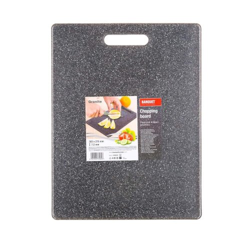Doštička krájacia plastová GRANITE o rozmere 36,3 x 27,5 x 0,75 cm, vyrobená z kvalitného plastu pre každodenné použitie. Doštička sa ľahko udržuje a je vhodná na krájanie s oceľovými aj keramickými nožmi.