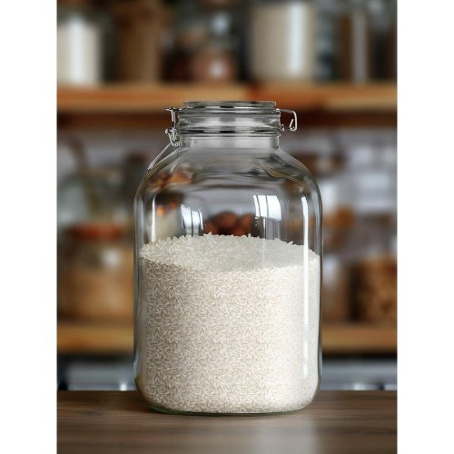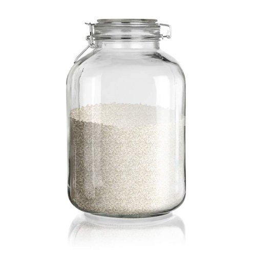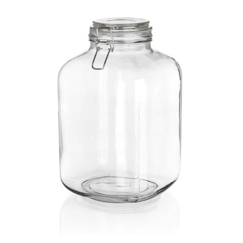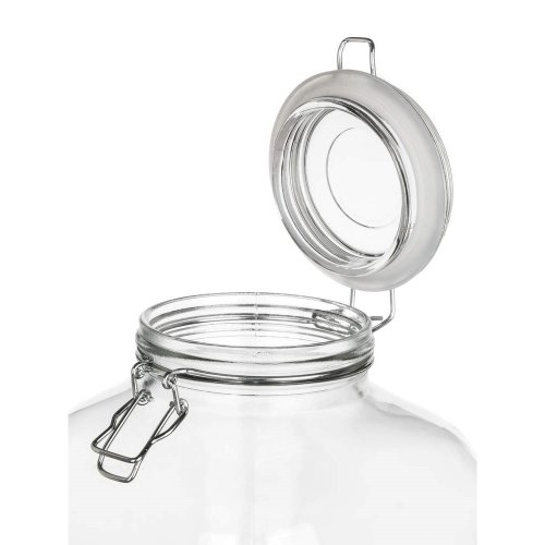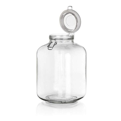 Sklenená hermetická dóza EREA 5 l so skleneným viečkom a kovovým zatváracím patentom, viečko je osadené silikónovým tesnením, drôtený systém uzáveru nie je vhodný do umývačky (nie je nerezový). Ideálna na uskladnenie suchých potravín - cestoviny, huby atď. alebo nakladanie.