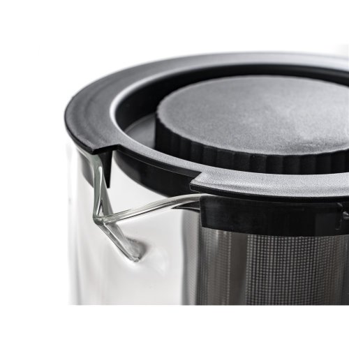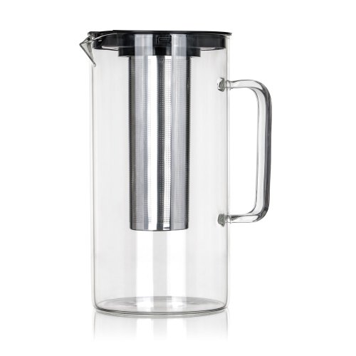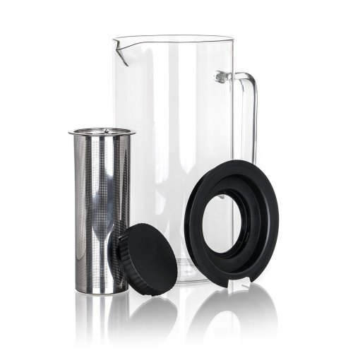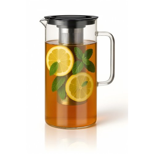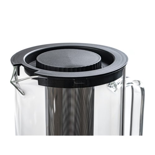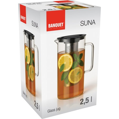 Sklenený džbán 2,5 ls plastovým viečkom a nerezovým sitkom je vhodný na podávanie studených aj teplých nápojov. Naplnením sitka vytvoríte ovocné, zeleninové či bylinkové malinovky alebo sypaný a bylinkový čaj. Toto sitko je možné vybrať.