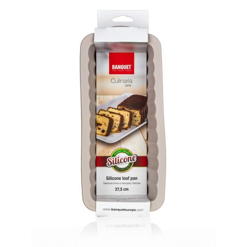 Silikónová forma biskupský chlebíček 27,5 x 11 cm CULINARIA Latte, výška 6,5 cm. Forma je odolná vysokým teplotám do 230 st.C , možno ju používať do elektrickej aj mikrovlnnej rúry, neviaže chute ani pachy pokrmov, ľahko sa udržuje, možno umývať v umývačke riadu. Silikón je veľmi populárny materiál, ktorý pre svoje jedinečné vlastnosti našiel svoje uplatnenie aj v kuchyni. Vyrábajú sa z neho rôzne druhy foriem na pečenie, vály a valčeky na cesto, stierky, mašlovačky, rôzne druhy kuchynské náčinie a mnohé ďalšie výrobky.