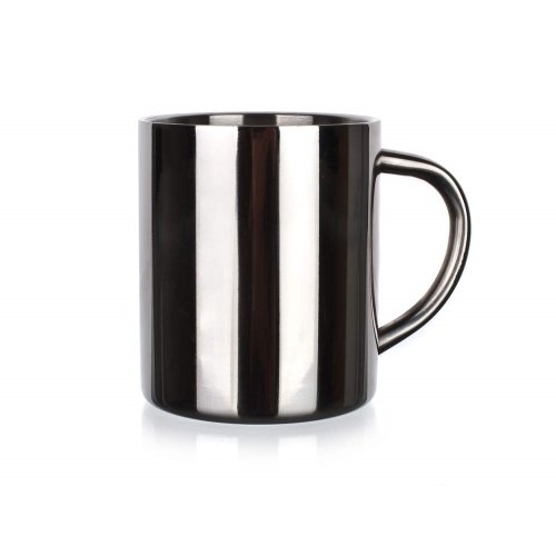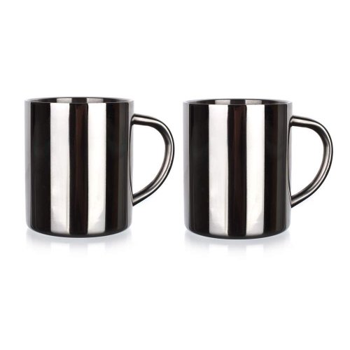 Súprava dvoch nerezových dvojplášťových hrnčekov 300 ml, výška hrnčekov 9 cm, vnútorný priemer 6,9 cm, vonkajší priemer 7,3 cm, hmotnosť 130 g, objem hrnčeka po okraj 300 ml.